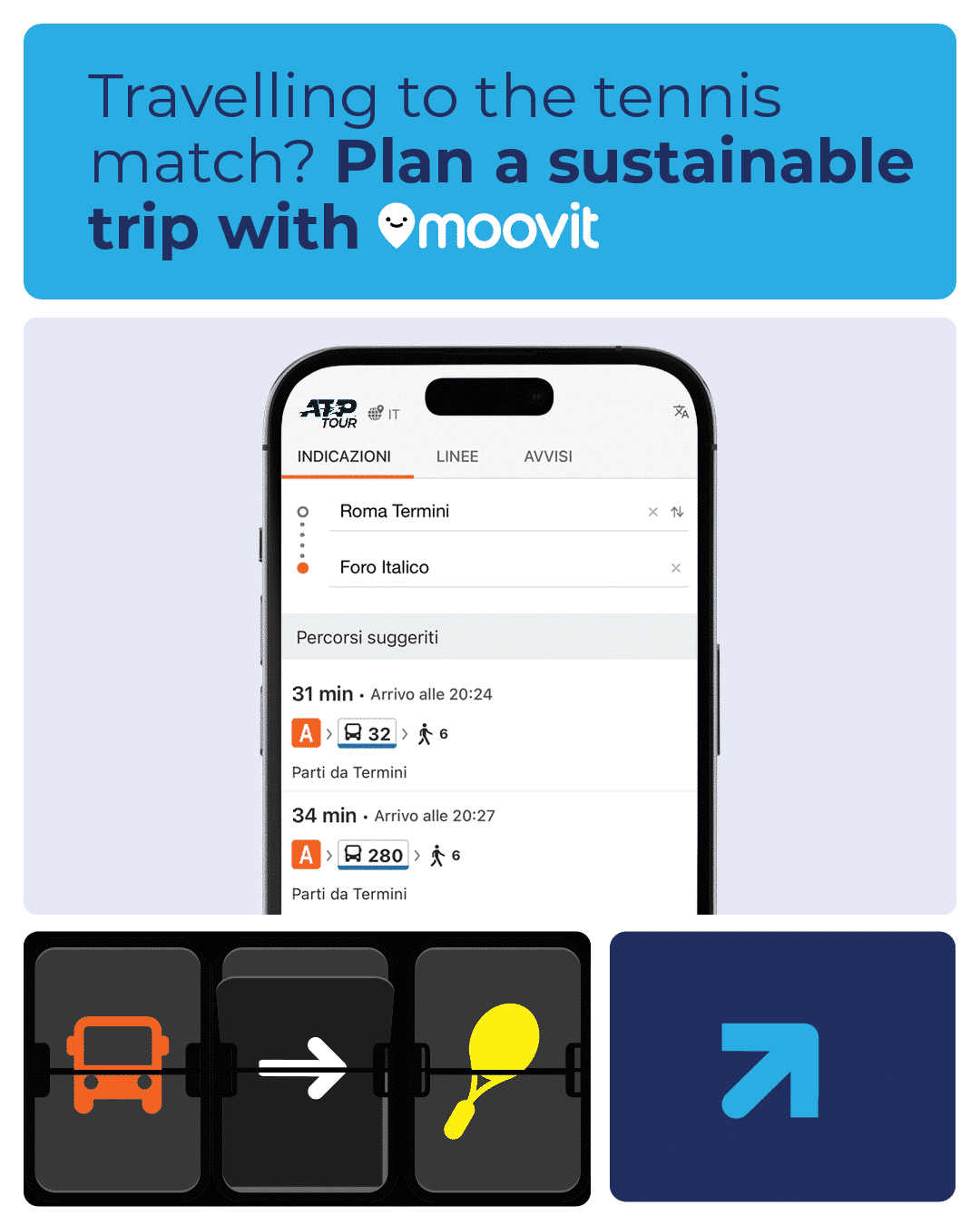 Moovit will provide spectators travelling to the Internazionali BNL d’Italia with tailored journey planning information, covering all scheduled public transport services as well as sustainable last-mile options such as bike and taxi. By encouraging the shift to high-capacity public transit and low-emission mobility solutions, the collaboration aims to significantly reduce CO2 emissions associated with match-day travel, underlining the critical role that sustainable mobility plays in mitigating climate impact at major sporting events.
