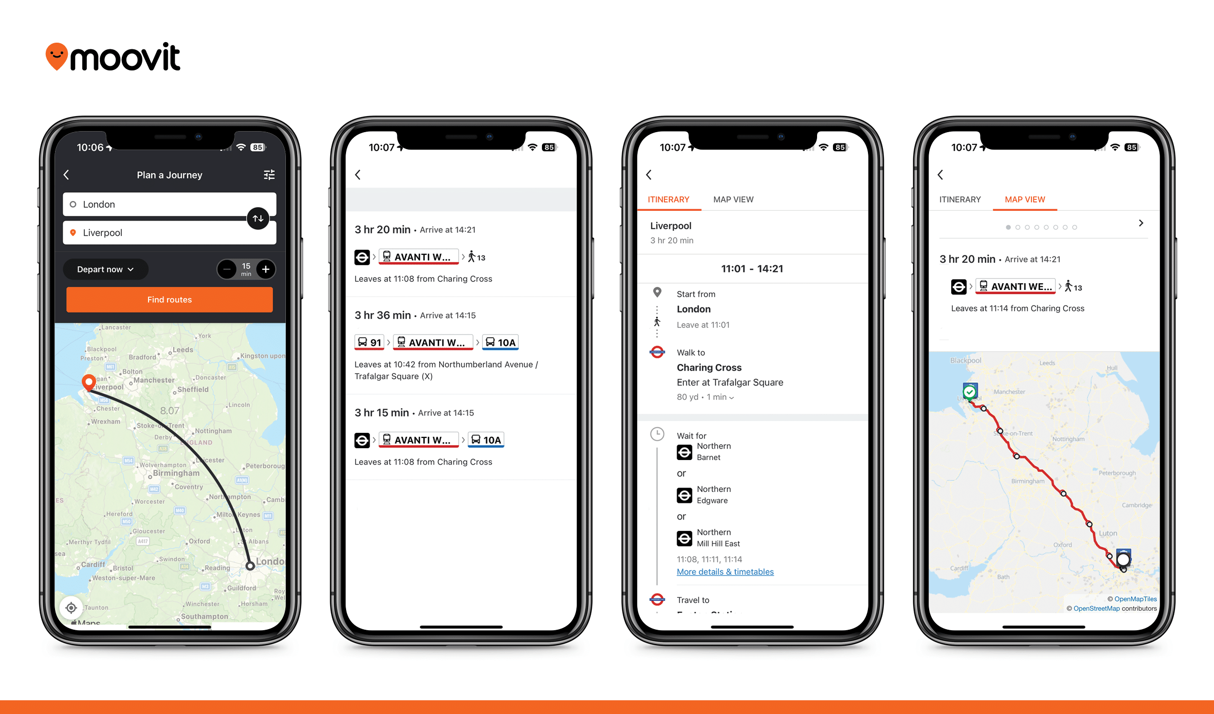 As an example, Moovit users can now seamlessly plan a journey from Liverpool Street Station in London (in the UK’s South East Region) to Oxford Road in Manchester (in the UK’s North West Region).